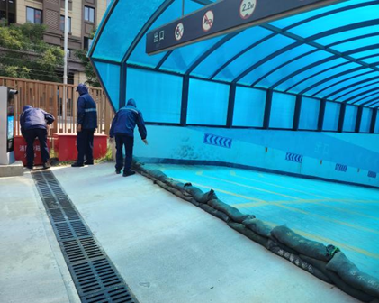 金茂雄安:金茂雄安闻“汛”而动,坚持“先挡后排”,党员防汛突击队提前布置挡水板、柴油泵、排水泵等设备,并安排专人小组24小时巡防;联合总包逐项排查隐患,即查即改;启动监测设备和信息化平台实时监测水位,触发预警即启动排水设备,确保积水一日内排净、工地与人员双安全。