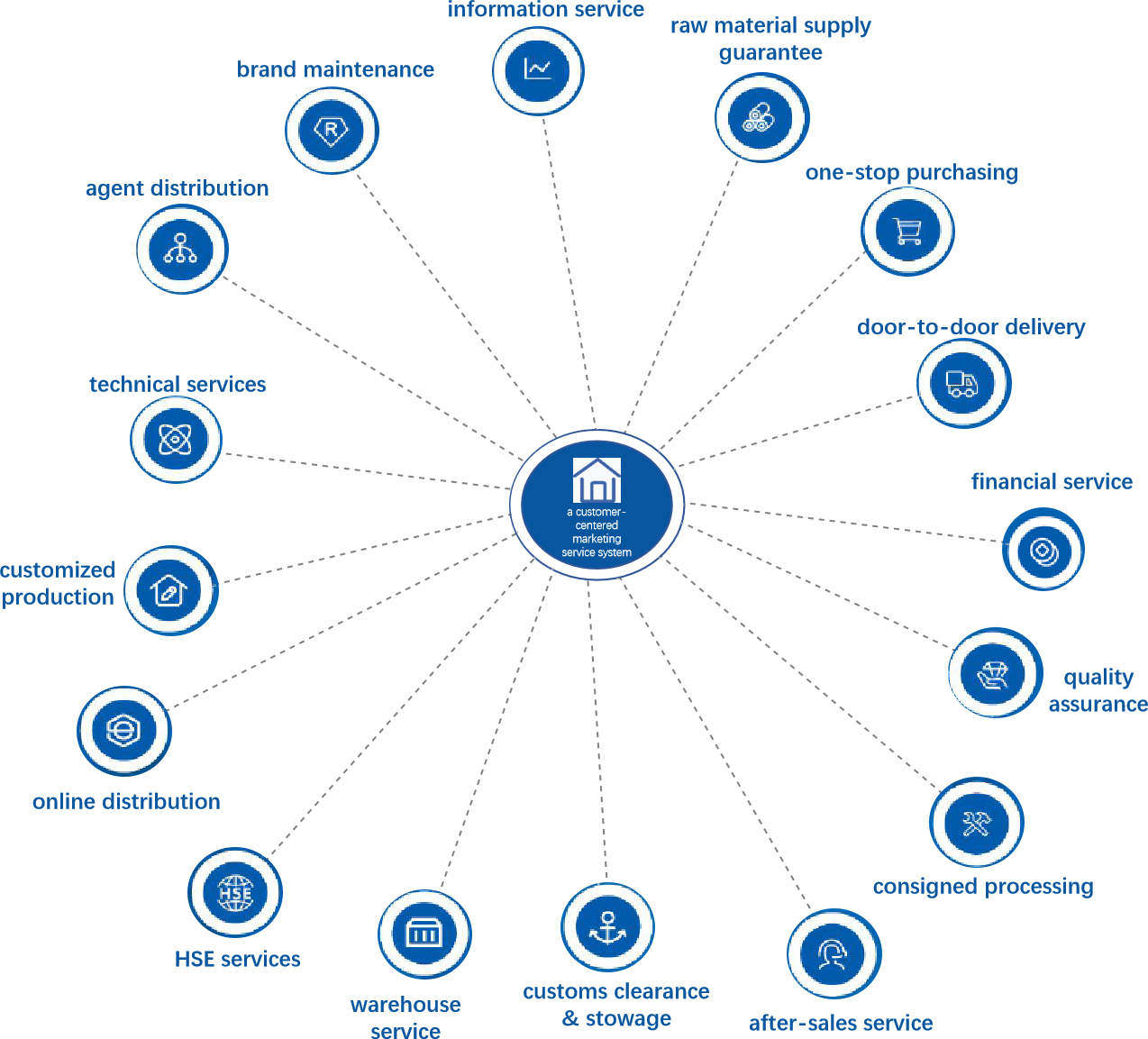 Sinochem Plastics has developed a customer-centered marketing service system, which provides multiple value-added services such as one-stop purchasing, financial service and door-to-door delivery.